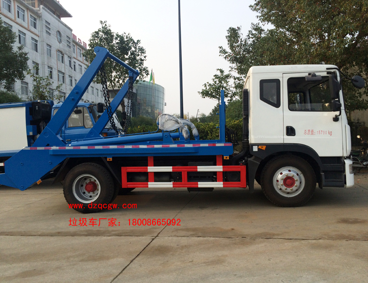 車輛名稱: 東風(fēng)153擺臂式垃圾車 整車型號: SZD5160ZBSEZ5(炎帝牌)
