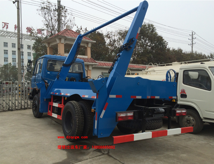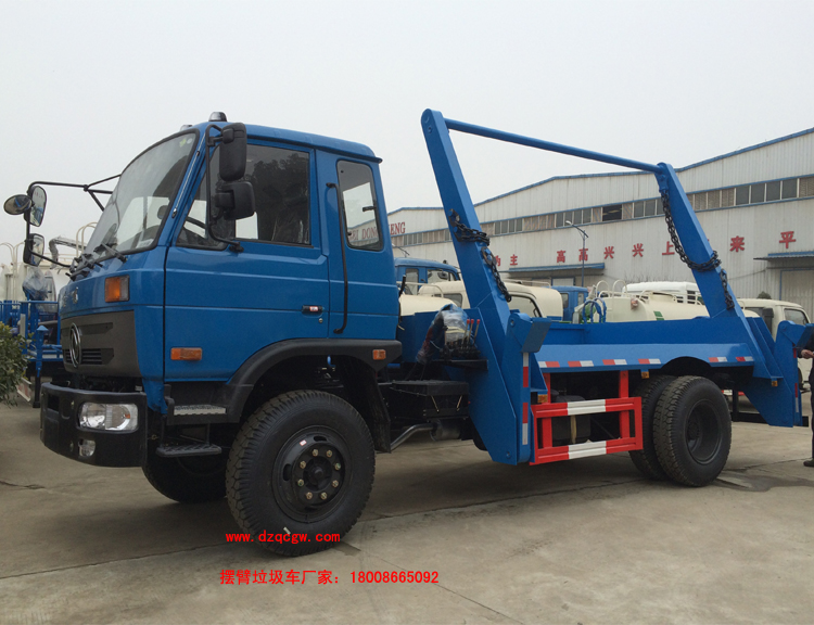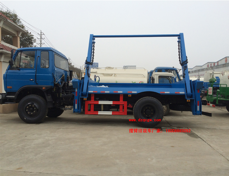 車輛名稱: 東風(fēng)145擺臂式垃圾車 整車型號(hào): SZD5165ZBSED5(炎帝牌)