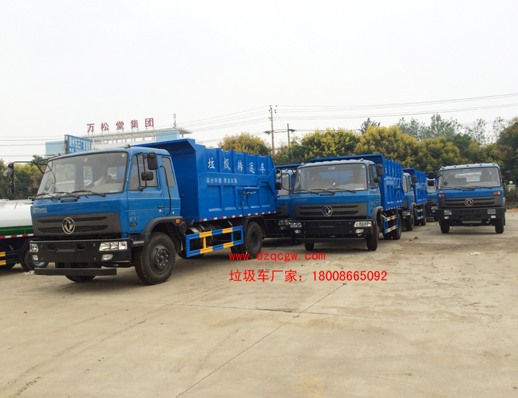 8輛東風(fēng)平頭壓縮對接垃圾車列隊出廠,該款對接垃圾車底盤可采用東風(fēng)145或153國四駕駛室,3950mm或4500mm軸距,對應(yīng)外形尺寸6850mm和7800mm,玉柴或康明斯國四發(fā)動機,250mm大梁,東風(fēng)6檔變速箱,前橋3.6噸,后橋9噸,9.00-20輪胎。