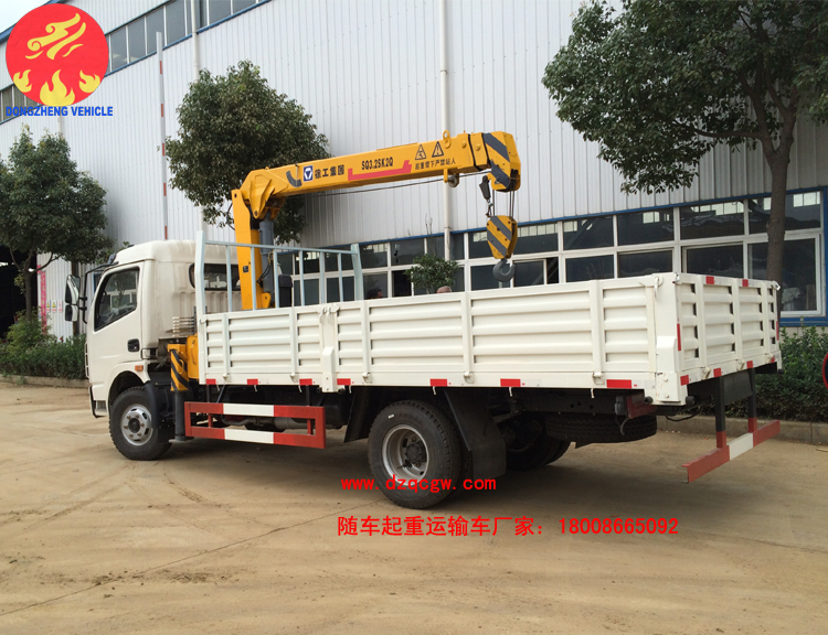 該東風(fēng)多利卡3.2噸隨車(chē)起重運(yùn)輸車(chē)采用東風(fēng)原廠(chǎng)排半底盤(pán),國(guó)三玉柴140馬力發(fā)動(dòng)機(jī),7.50R16鋼絲胎,動(dòng)力轉(zhuǎn)向。配備徐工3.2噸三節(jié)直臂,4.15米標(biāo)準(zhǔn)貨廂?蓮V泛用于隨車(chē)起吊、園林、載物等。