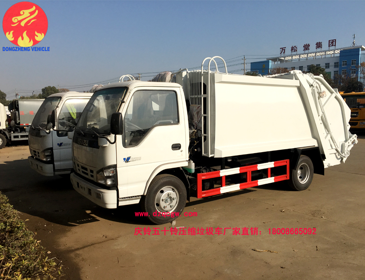 慶鈴五十鈴國五壓縮式垃圾車,采用慶鈴600P輕卡底盤,慶鈴130馬力發(fā)動機,尼龍?zhí),ABS。廂體材料為武鋼優(yōu)質(zhì)炭鋼,厚度為邊5mm,廂體容積為5-6立方米。由裝料機構(gòu)、壓縮機構(gòu)、卸料機構(gòu)、油泵、油箱、控制閥等組成的液壓機構(gòu)組成。裝料機構(gòu)由支架、連桿機構(gòu)、凸輪、掛鉤等組成,在油缸作用下,將垃圾桶內(nèi)的垃圾自動翻轉(zhuǎn)倒入料斗內(nèi)。主要用于收集與轉(zhuǎn)運生活垃圾。