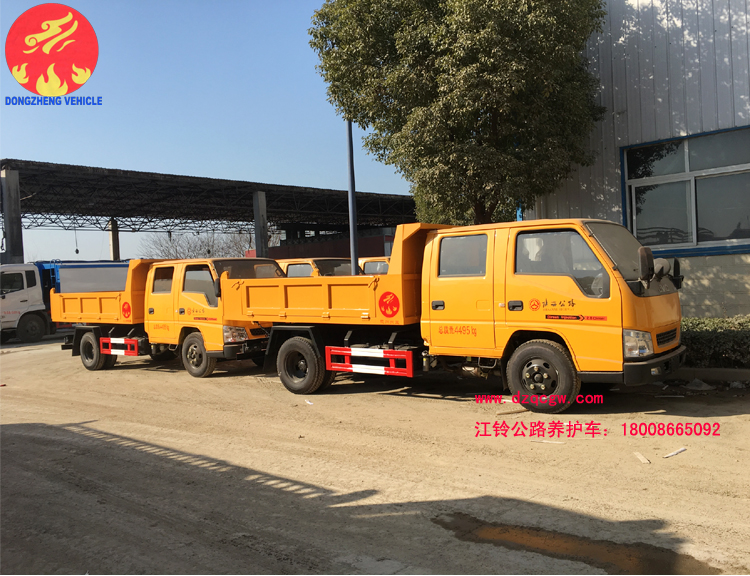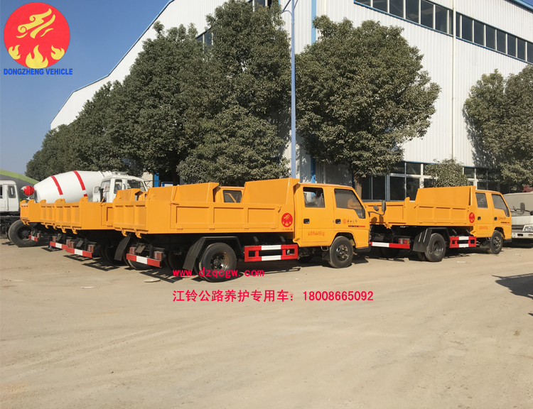 我公司生產(chǎn)的江鈴公路養(yǎng)護車是一款雙排座自卸車,該車實用性強,性價比高,是一款適用于公路養(yǎng)護作業(yè)的理想用車型。主要配置為江鈴雙排駕駛室,3360mm軸距,江鈴115馬力國五發(fā)動機,7.00R16LT鋼絲胎,油剎,5檔箱,排氣制動,原廠ABS。上裝部分主要由液壓系統(tǒng)、操作系統(tǒng)組成。舉升油缸為雙頂油缸,箱體標配邊3底4mm。