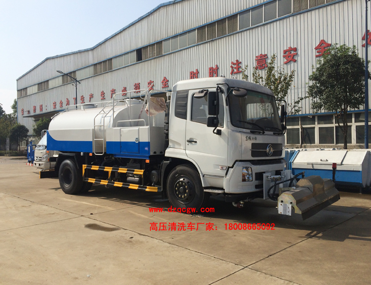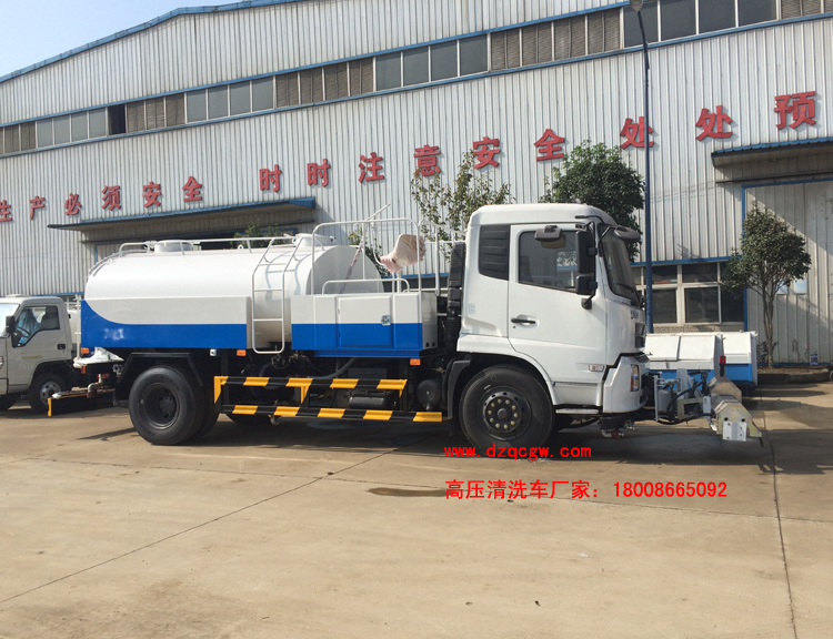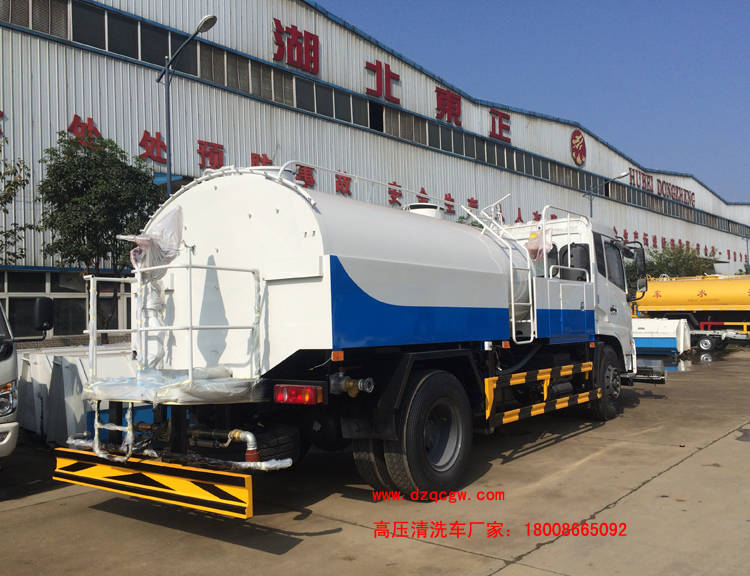 底盤說明:東風(fēng)天錦平頭一排半平標(biāo)頂駕駛室,康機(jī)或東風(fēng)180馬力發(fā)動機(jī),4.5T前橋,9噸后橋,東風(fēng)6檔變速箱,9.00R20鋼絲胎,帶空調(diào),ABS。罐體有效容積6.3立方米。 改裝部分:意大利進(jìn)口 16Mpa高壓泵或國產(chǎn)高壓柱塞泵,國產(chǎn)配套件液壓驅(qū)動系統(tǒng),60米19mm高壓軟管,液壓驅(qū)動卷盤,碳鋼噴頭(10個(gè)),夾心取力器,罐體形狀為圓罐,手動操作。 P.S. 高壓清洗車可加裝灑水裝置,安裝綠化灑水炮、前沖、后灑、側(cè)噴,可進(jìn)行綠化灑水、噴霧、壓塵、高壓沖洗路面等。高壓清洗車還可加裝吸污功能,集清洗、吸污于一體。選裝普通長警燈或圓形警燈,LED箭頭燈,低水位報(bào)警裝置。 1.噴水架清洗寬度2.5m-3.5m,可任意控制,當(dāng)伸縮噴桿收縮時(shí),可實(shí)現(xiàn)雙重水流強(qiáng)化清洗,適用于清洗城市道路、廣場; 2.左、右角噴適用于清洗路緣、護(hù)欄隔離帶、人行道; 3.高壓噴槍清洗; 4.噴霧系統(tǒng),可以噴霧降塵、調(diào)節(jié)空氣濕度及噴灑空氣消毒劑; 5.低壓沖洗及灑水降溫;具獨(dú)有的前灑(水)、后沖裝置; 6.道路標(biāo)線清洗機(jī)構(gòu);適用于清洗道路標(biāo)線; 7.隔噪墻清洗機(jī)構(gòu),適用于清洗城市高架路隔噪墻;8.護(hù)欄清洗刷,適用于清洗高速公路及城市道路護(hù)欄; 9.液壓升降平臺,適用于清洗及維護(hù)城市道路及公路的高空設(shè)施;10.推雪鏟,用于道路除雪。11.自吸功能、綠化澆灌及輔助消防功能。 |
