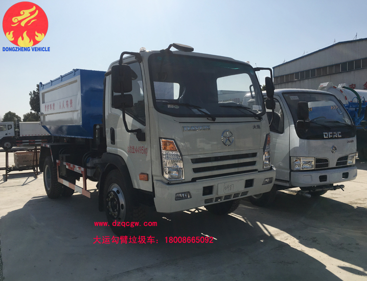 值得一說的是,大運黃牌勾臂自卸垃圾車可以作工程自卸用,承載力大,馬力大,爬坡能力強,加強性大梁,性價比高。