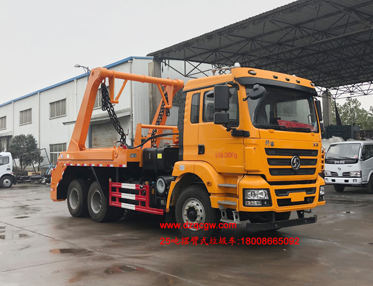 25噸設(shè)計款陜汽后雙橋擺臂式垃圾車已生產(chǎn)完畢,準備出廠。