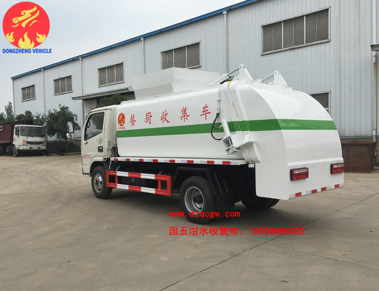 底盤說明:東風(fēng)福瑞卡國五單排可翻轉(zhuǎn)駕駛室,3308mm軸距,多種可選國五發(fā)動(dòng)機(jī),5檔變速箱,前橋2噸,后橋3.5噸,7.00-16輪胎,ABS,方向助力,氣剎。 餐廚垃圾車又稱餐余垃圾車余廚垃圾車或者泔水車,餐廚垃圾車是垃圾車中的一種,是用于收集和運(yùn)輸生活垃圾、食品垃圾(泔水)及城市淤泥的專用車輛。 標(biāo)準(zhǔn)配置:圓形碳鋼罐體,罐體厚度5mm,拉桿提升機(jī)帶上蓋聯(lián)動(dòng);后蓋液壓開啟;罐體舉升自卸。選裝內(nèi)軒推鏟卸料,帶渣液分享功能。餐廚垃圾車可分罐式和廂式。 特點(diǎn):改裝部分具有裝、卸垃圾自動(dòng)化程度高、工作可靠、密封性好、裝載容積大、操作簡(jiǎn)便、作業(yè)過程密閉,無污水泄露和異味的散發(fā),環(huán)保性好等特點(diǎn)?膳溲b載不同規(guī)格的標(biāo)準(zhǔn)垃圾桶,具有廣泛的適用性。餐廚垃圾車高效、清潔的是垃圾收、運(yùn)專用車輛。 |