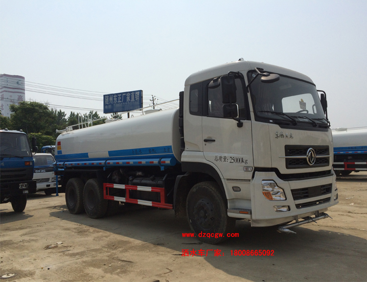 底盤說明:東風天龍排半標準駕駛室,6X4驅(qū)動,4350+1300mm軸距,康機245馬力柴油共軌國四發(fā)動機,7噸前橋,10噸單級減速雙后橋,陜齒8檔變速箱,10.00R20鋼絲胎,帶空調(diào),ABS,行車記錄儀。罐體有效容積:14.7立方米。 專用功能:該多功能灑水車適合于各種路面的灑水、噴霧、降溫、除塵、沖洗塵埃臟物,亦可用于園林綠化、市政環(huán)衛(wèi)、路面養(yǎng)護及應(yīng)急消防、運輸飲用水等。專用部分由罐體、水泵、球閥、輸水管道、灑水裝置等部件組成。水泵、取力箱、球閥均為國家定型產(chǎn)品,具有性能良好,工作可靠、壓力高、流量大、油耗低等特點。 改裝部分:標配前沖、后灑、側(cè)噴、工作平臺、綠化高炮、自流閥、消防接口,輸水管3米2根,8噸以上罐體帶高位花灑2個,億豐泵或金龍泵,控制方式為手動。選裝氣動閥門控制;高位花灑,大鴨嘴,藥盤,罐體側(cè)面加裝萬向可調(diào)節(jié)噴頭,罐體后部壓塵噴灑裝置,兩個圓警燈或長警燈,LED箭頭燈,泵可選裝威龍泵或農(nóng)藥噴霧裝置。 |