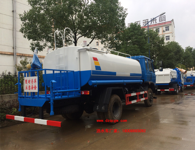 底盤(pán)說(shuō)明:153G型平頂豪華駕駛室,玉柴YC6J160-46國(guó)四發(fā)動(dòng)機(jī),六檔變速箱,250mm雙層車(chē)架,3.6T/9T前后橋,軸距3950mm/4700mm, 9.00-20尼龍?zhí),帶斷氣剎,動(dòng)力轉(zhuǎn)向,排氣制動(dòng)。水罐有效容積:10.7立方米。帶免征。 專(zhuān)用功能:該多功能灑水車(chē)適合于各種路面的灑水、噴霧、降溫、除塵、沖洗塵埃臟物,亦可用于園林綠化、市政環(huán)衛(wèi)、路面養(yǎng)護(hù)及應(yīng)急消防、運(yùn)輸飲用水等。專(zhuān)用部分由罐體、水泵、球閥、輸水管道、灑水裝置等部件組成。水泵、取力箱、球閥均為國(guó)家定型產(chǎn)品,具有性能良好,工作可靠、壓力高、流量大、油耗低等特點(diǎn)。 改裝部分:標(biāo)配前沖、后灑、側(cè)噴、工作平臺(tái)、綠化高炮、自流閥、消防接口,輸水管3米2根,8噸以上罐體帶高位花灑2個(gè),億豐泵或金龍泵,控制方式為手動(dòng)。選裝氣動(dòng)閥門(mén)控制;高位花灑,大鴨嘴,藥盤(pán),罐體側(cè)面加裝萬(wàn)向可調(diào)節(jié)噴頭,罐體后部壓塵噴灑裝置,兩個(gè)圓警燈或長(zhǎng)警燈,LED箭頭燈,泵可選裝威龍泵或農(nóng)藥噴霧裝置。 |