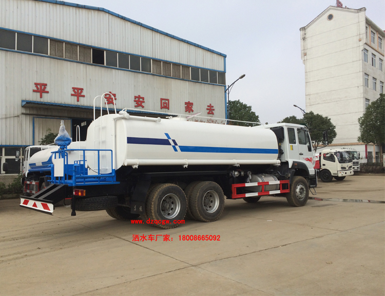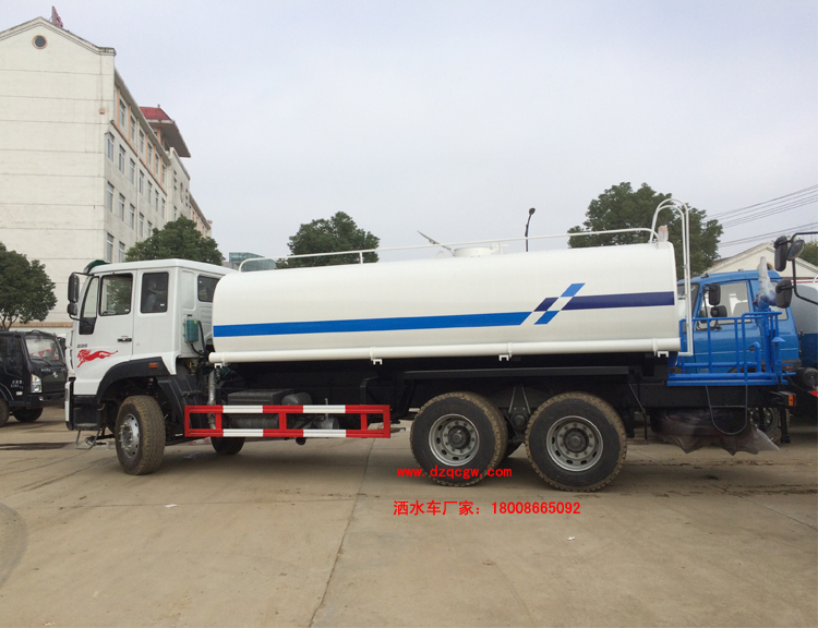 底盤說明:重汽斯太爾后雙橋底盤,重汽280馬力國(guó)五發(fā)動(dòng)機(jī),HOWO 10檔變速箱,153前后橋,4350+1350mm軸距,11.00R20鋼絲胎,帶空調(diào),ABS.罐體有效容積:14.7立方米。 專用功能:該多功能灑水車適合于各種路面的灑水、噴霧、降溫、除塵、沖洗塵埃臟物,亦可用于園林綠化、市政環(huán)衛(wèi)、路面養(yǎng)護(hù)及應(yīng)急消防、運(yùn)輸飲用水等。專用部分由罐體、水泵、球閥、輸水管道、灑水裝置等部件組成。水泵、取力箱、球閥均為國(guó)家定型產(chǎn)品,具有性能良好,工作可靠、壓力高、流量大、油耗低等特點(diǎn)。 改裝部分:標(biāo)配前沖、后灑、側(cè)噴、工作平臺(tái)、綠化高炮、自流閥、消防接口,輸水管3米2根,8噸以上罐體帶高位花灑2個(gè),億豐泵或金龍泵,控制方式為手動(dòng)。選裝氣動(dòng)閥門控制;高位花灑,大鴨嘴,藥盤,罐體側(cè)面加裝萬向可調(diào)節(jié)噴頭,罐體后部壓塵噴灑裝置,兩個(gè)圓警燈或長(zhǎng)警燈,LED箭頭燈,泵可選裝威龍泵或農(nóng)藥噴霧裝置。 |