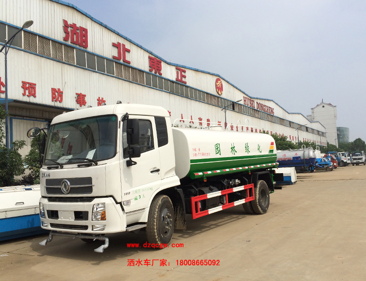 底盤說明:東風(fēng)天錦平頭一排半平標頂駕駛室,軸距4500,4200mm,國四康明斯發(fā)動機,4.5T前橋,9噸后橋,東風(fēng)6檔變速箱,9.00R20鋼絲胎,帶空調(diào),ABS。罐體有效容積:10立方米。運輸介質(zhì):水。帶免征。 專用功能:該多功能灑水車適合于各種路面的灑水、噴霧、降溫、除塵、沖洗塵埃臟物,亦可用于園林綠化、市政環(huán)衛(wèi)、路面養(yǎng)護及應(yīng)急消防、運輸飲用水等。專用部分由罐體、水泵、球閥、輸水管道、灑水裝置等部件組成。水泵、取力箱、球閥均為國家定型產(chǎn)品,具有性能良好,工作可靠、壓力高、流量大、油耗低等特點。 改裝部分:標配前沖、后灑、側(cè)噴、工作平臺、綠化高炮、自流閥、消防接口,輸水管3米2根,8噸以上罐體帶高位花灑2個,億豐泵或金龍泵,控制方式為手動。選裝氣動閥門控制;高位花灑,大鴨嘴,藥盤,罐體側(cè)面加裝萬向可調(diào)節(jié)噴頭,罐體后部壓塵噴灑裝置,兩個圓警燈或長警燈,LED箭頭燈,泵可選裝威龍泵或農(nóng)藥噴霧裝置。 |