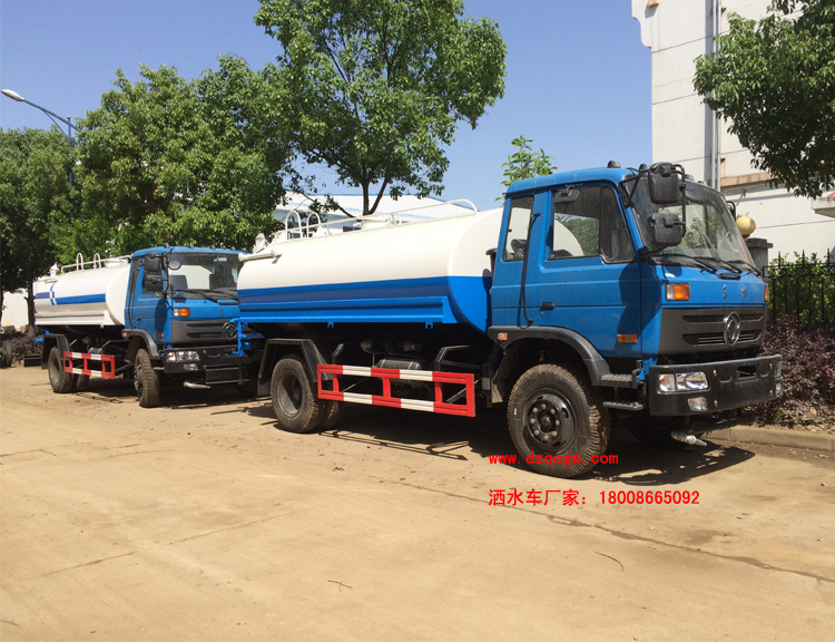 底盤說明:東風(fēng)153單排翻轉(zhuǎn)車身,軸距3950,4500mm,朝柴或康機(jī)國(guó)四發(fā)動(dòng)機(jī),前橋3.6噸,后橋6噸,9.00-20鋼絲胎,方向助力,斷氣剎,6檔變速箱。外形長(zhǎng)8500,7500mm與軸距4500,3950mm一一對(duì)應(yīng)。罐體有效容積:11.8立方米。運(yùn)輸介質(zhì):丙酮水溶液。帶免征。 專用功能:該多功能灑水車適合于各種路面的灑水、噴霧、降溫、除塵、沖洗塵埃臟物,亦可用于園林綠化、市政環(huán)衛(wèi)、路面養(yǎng)護(hù)及應(yīng)急消防、運(yùn)輸飲用水等。專用部分由罐體、水泵、球閥、輸水管道、灑水裝置等部件組成。水泵、取力箱、球閥均為國(guó)家定型產(chǎn)品,具有性能良好,工作可靠、壓力高、流量大、油耗低等特點(diǎn)。 改裝部分:標(biāo)配前沖、后灑、側(cè)噴、工作平臺(tái)、綠化高炮、自流閥、消防接口,輸水管3米2根,8噸以上罐體帶高位花灑2個(gè),億豐泵或金龍泵,控制方式為手動(dòng)。選裝氣動(dòng)閥門控制;高位花灑,大鴨嘴,藥盤,罐體側(cè)面加裝萬向可調(diào)節(jié)噴頭,罐體后部壓塵噴灑裝置,兩個(gè)圓警燈或長(zhǎng)警燈,LED箭頭燈,泵可選裝威龍泵或農(nóng)藥噴霧裝置。 |