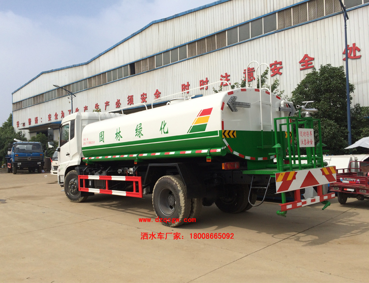底盤說明:東風(fēng)天錦國五底盤,國五康明斯發(fā)動(dòng)機(jī),4.5T前橋,9噸后橋,東風(fēng)6檔變速箱,9.00R20鋼絲胎,帶空調(diào),ABS。外形長(zhǎng)8600,8400mm與軸距4700,4500mm一一對(duì)應(yīng),罐體有效容積:11.15立方米。運(yùn)輸介質(zhì):丙酮水溶液。帶免征。 專用功能:該多功能灑水車適合于各種路面的灑水、噴霧、降溫、除塵、沖洗塵埃臟物,亦可用于園林綠化、市政環(huán)衛(wèi)、路面養(yǎng)護(hù)及應(yīng)急消防、運(yùn)輸飲用水等。專用部分由罐體、水泵、球閥、輸水管道、灑水裝置等部件組成。水泵、取力箱、球閥均為國家定型產(chǎn)品,具有性能良好,工作可靠、壓力高、流量大、油耗低等特點(diǎn)。 改裝部分:標(biāo)配前沖、后灑、側(cè)噴、工作平臺(tái)、綠化高炮、自流閥、消防接口,輸水管3米2根,8噸以上罐體帶高位花灑2個(gè),億豐泵或金龍泵,控制方式為手動(dòng)。選裝氣動(dòng)閥門控制;高位花灑,大鴨嘴,藥盤,罐體側(cè)面加裝萬向可調(diào)節(jié)噴頭,罐體后部壓塵噴灑裝置,兩個(gè)圓警燈或長(zhǎng)警燈,LED箭頭燈,泵可選裝威龍泵或農(nóng)藥噴霧裝置。 |