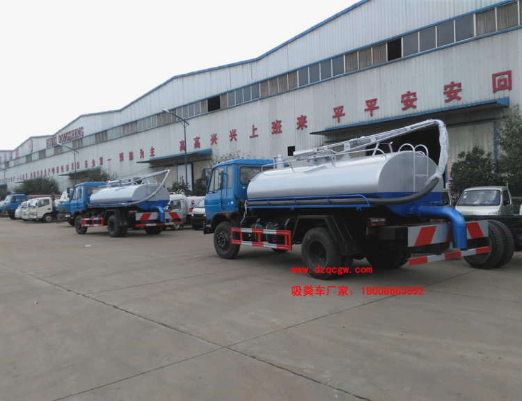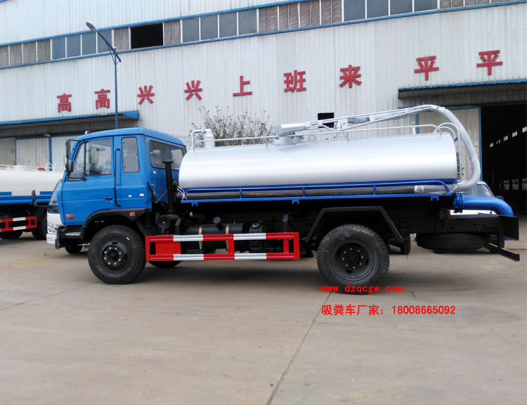 底盤說明:153豪華駕駛室,軸距3950或4200mm,玉柴或康明斯國四發(fā)動(dòng)機(jī),六檔變速箱,3.6t前橋/8t后橋,9.00尼龍?zhí),車?50雙層。軸距3950mm,4200mm與整車長7450mm,7700mm一一對應(yīng)。罐體有效容積:8.13立方米。 專用部分:標(biāo)配取力器、隨州真空吸糞泵(8mm以上建議加裝雙聯(lián)真空泵)、油水分離器、四通閥、洗手裝置、罐體后封頭閘閥控制自流口1個(gè)、糞罐、帶視糞窗1個(gè)、1根6米吸糞管、普通油漆。 吸糞管: 可360度旋轉(zhuǎn),抽滿糞罐時(shí)間:≤5min,吸程:≥6m。自吸自排,壽命長,工作速度快,容量大,運(yùn)輸方便,適用于收集運(yùn)輸糞便、泥漿、原油等液體物質(zhì)。P.S.可根據(jù)客戶要求加裝灑水功能,水罐糞罐獨(dú)立分倉,即可吸糞又可灑水,一車兩用。加裝水箱或工具箱,加裝液位報(bào)警裝置。 |