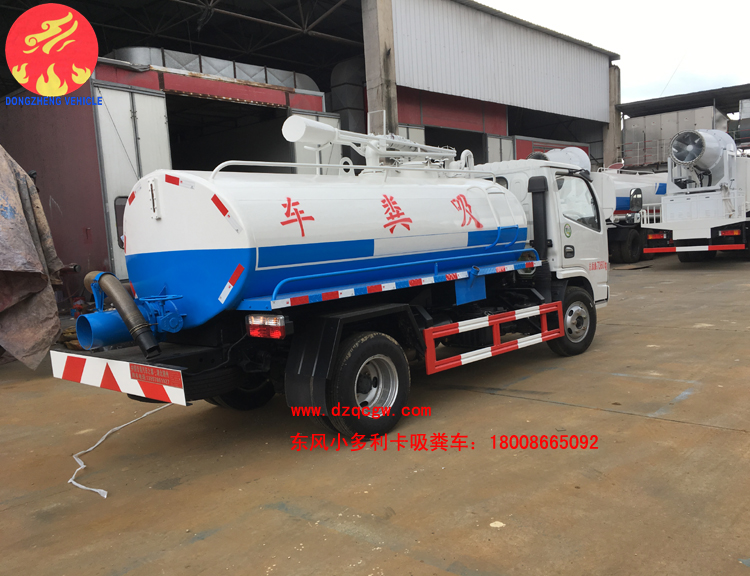 底盤說明:東風(fēng)福瑞卡國五單排可翻轉(zhuǎn)駕駛室,3308mm軸距,多種可選國五發(fā)動機,5檔變速箱,前橋2噸,后橋4噸,7.00-16輪胎,ABS,方向助力,氣剎。罐體有效容積:4.33立方。 專用部分:標(biāo)配取力器、隨州真空吸糞泵(8mm以上建議加裝雙聯(lián)真空泵)、油水分離器、四通閥、洗手裝置、罐體后封頭閘閥控制自流口1個、糞罐、帶視糞窗1個、1根6米吸糞管、普通油漆。 吸糞管 : 可360度旋轉(zhuǎn),抽滿糞罐時間:≤5min,吸程:≥6m。自吸自排,壽命長,工作速度快,容量大,運輸方便,適用于收集運輸糞便、泥漿、原油等液體物質(zhì)。P.S.可根據(jù)客戶要求加裝灑水功能,水罐糞罐獨立分倉,即可吸糞又可灑水,一車兩用。加裝水箱或工具箱,加裝液位報警裝置。 |