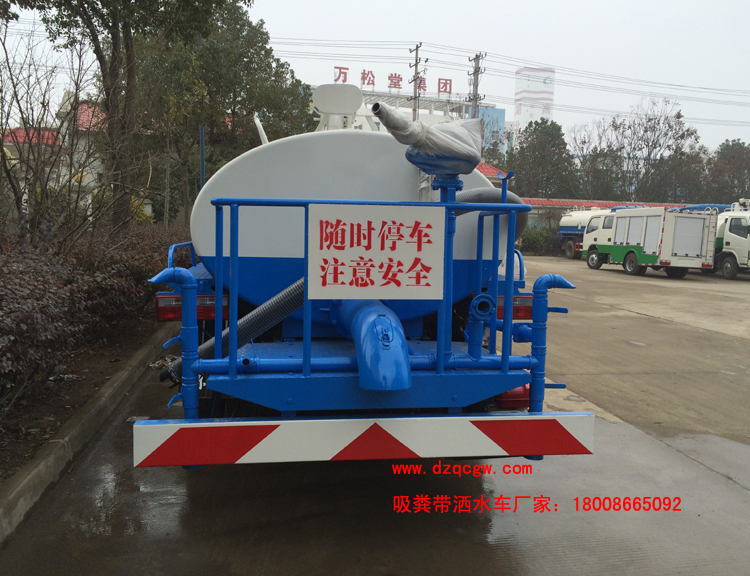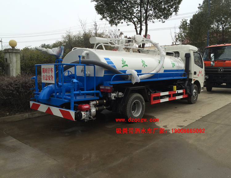 底盤說明:東風(fēng)多利卡國(guó)五單排可翻轉(zhuǎn)駕駛室,3800mm軸距,多種可選國(guó)五發(fā)動(dòng)機(jī),萬(wàn)里揚(yáng)6檔變速箱,前橋2.1噸,后橋4.2噸,7.50R16輪胎,ABS,方向助力,斷氣剎。罐體有效容積:8.5立方米。 專用部分:標(biāo)配取力器、隨州真空吸糞泵(8mm以上建議加裝雙聯(lián)真空泵)、油水分離器、四通閥、洗手裝置、罐體后封頭閘閥控制自流口1個(gè)、糞罐、帶視糞窗1個(gè)、1根6米吸糞管、普通油漆。 吸糞管:可360度旋轉(zhuǎn),抽滿糞罐時(shí)間:≤5min,吸程:≥6m。自吸自排,壽命長(zhǎng),工作速度快,容量大,運(yùn)輸方便,適用于收集運(yùn)輸糞便、泥漿、原油等液體物質(zhì)。P.S.可根據(jù)客戶要求加裝灑水功能,水罐糞罐獨(dú)立分倉(cāng),即可吸糞又可灑水,一車兩用。加裝水箱或工具箱,加裝液位報(bào)警裝置。 |