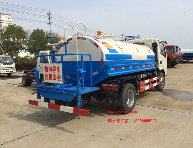 底盤說明:東風小多利卡單排駕駛室,3308mm軸距,國五朝柴102馬力或玉柴115馬力發(fā)動機,萬里揚5檔變速箱,7.00R16鋼絲胎,方向助力,ABS,駱駝電瓶,中控鎖,電動門窗。罐體有效容積:1.57立方米。 專用功能:該多功能灑水車適合于各種路面的灑水、噴霧、降溫、除塵、沖洗塵埃臟物,亦可用于園林綠化、市政環(huán)衛(wèi)、路面養(yǎng)護及應急消防、運輸飲用水等。專用部分由罐體、水泵、球閥、輸水管道、灑水裝置等部件組成。水泵、取力箱、球閥均為國家定型產品,具有性能良好,工作可靠、壓力高、流量大、油耗低等特點。 改裝部分:標配前沖、后灑、側噴、工作平臺、綠化高炮、自流閥、消防接口,輸水管3米2根,8噸以上罐體帶高位花灑2個,億豐泵或金龍泵,控制方式為手動。選裝氣動閥門控制;高位花灑,大鴨嘴,藥盤,罐體側面加裝萬向可調節(jié)噴頭,罐體后部壓塵噴灑裝置,兩個圓警燈或長警燈,LED箭頭燈,泵可選裝威龍泵或農藥噴霧裝置。 |